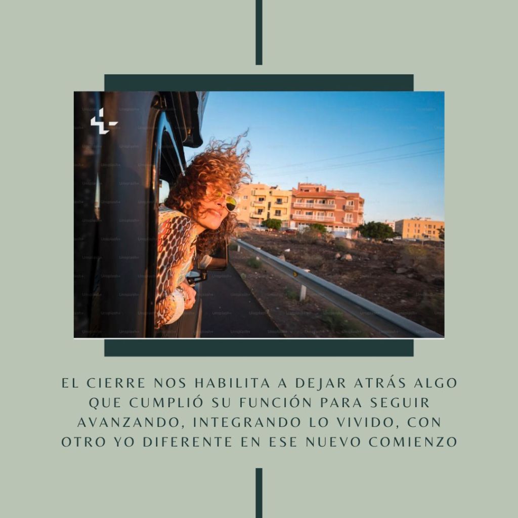 El cierre nos habilita a dejar atrás algo que ya cumplió su función para seguir avanzando, habiendo integrado lo vivido, con otro yo diferente en ese nuevo comienzo. El cierre nos da la oportunidad del aprendizaje y la posibilidad de la apertura a un nuevo camino.